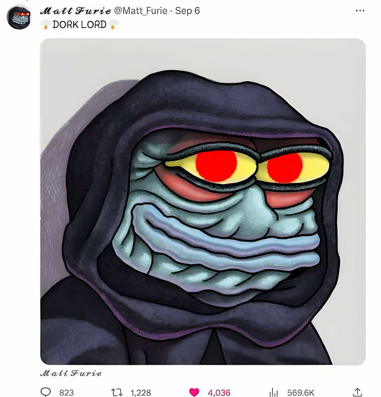 The Dork Lord, the enigmatic final boss of Matt Furie's โThe Boys Clubโ. It came into the spotlight after the creator of Pepe, Matt Furie, tweeted some Star Wars-themed artwork.